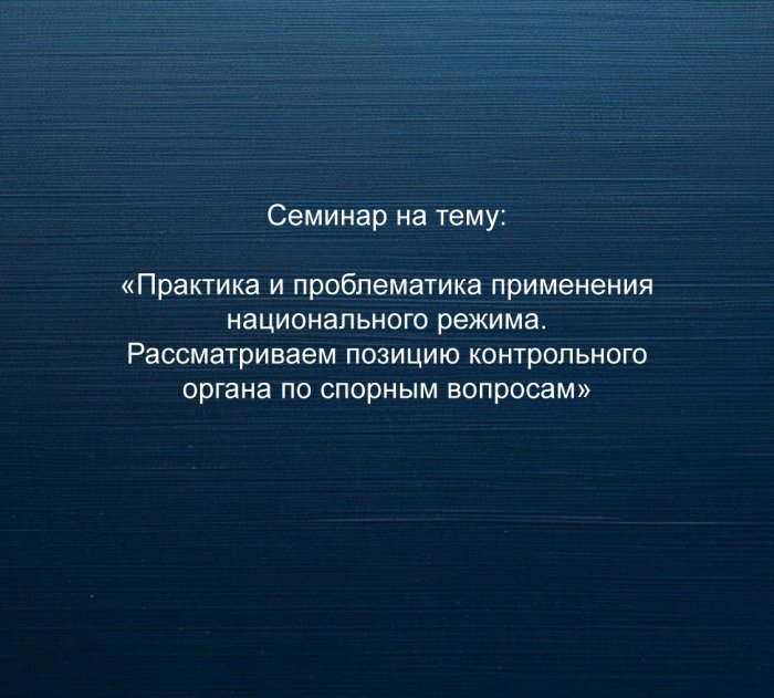 Семинар «Практика и проблематика применения национального режима. Рассматриваем позицию контрольного органа по спорным вопросам»