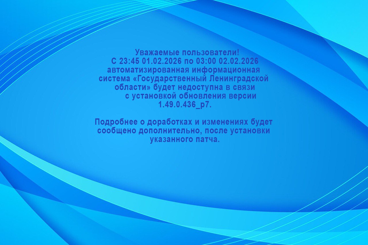 С 23:45 01.02.2026 по 03:00 02.02.2026 автоматизированная информационная система «Государственный заказ Ленинградской области» будет недоступна в связи с установкой обновления версии 1.49.0.436_p7.